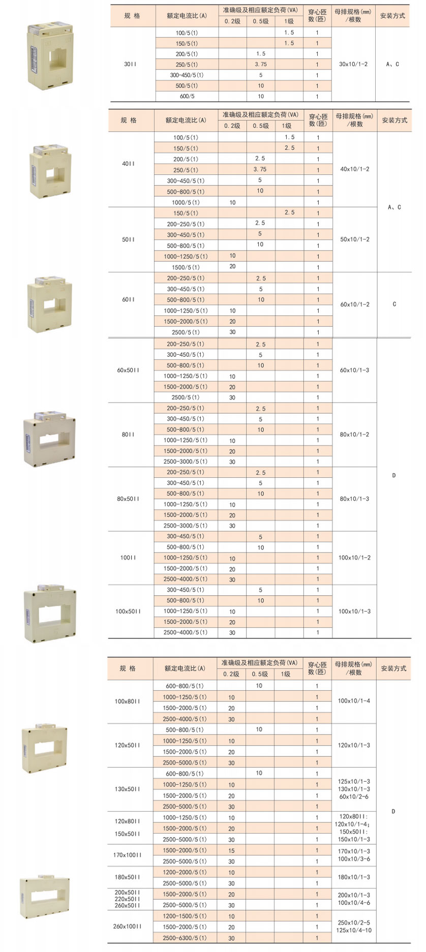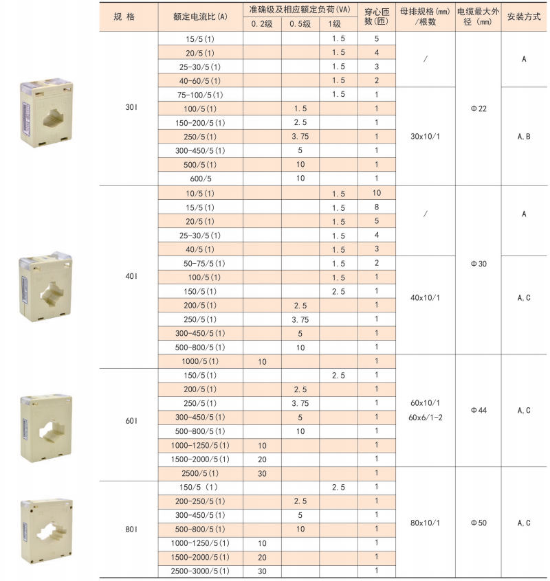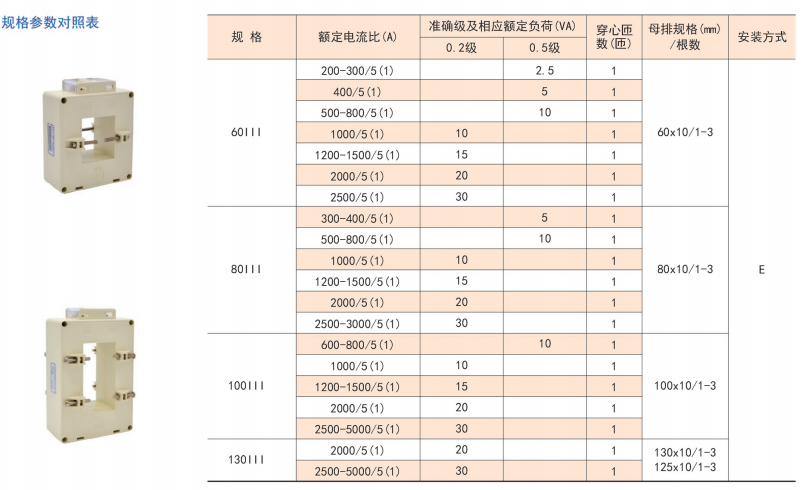 該系列互感器作為交流電流信號(hào)采集元件,可與測(cè)量?jī)x表配套使用,一次電流測(cè)量范圍5-6300A,二次輸出5A或1A,測(cè)量范圍為額定值的5-120%。