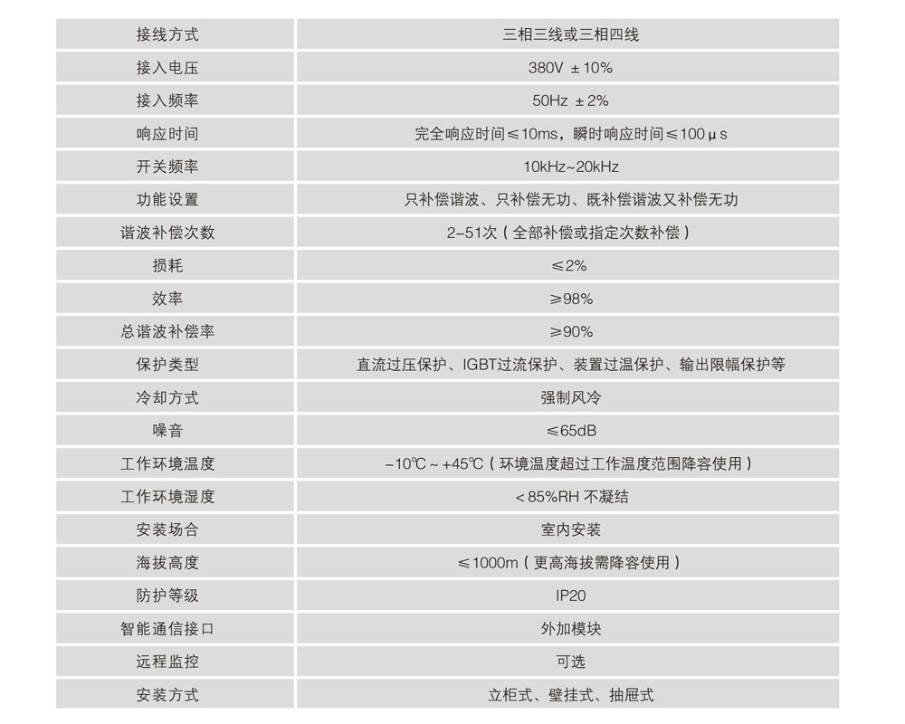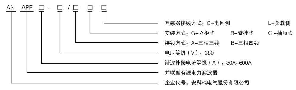 適用于并聯(lián)在含諧波負(fù)載的低壓配電系統(tǒng)中,能夠?qū)?dòng)態(tài)變化的諧波電流進(jìn)行快速實(shí)時(shí)的跟蹤和補(bǔ)償。訂貨范例: