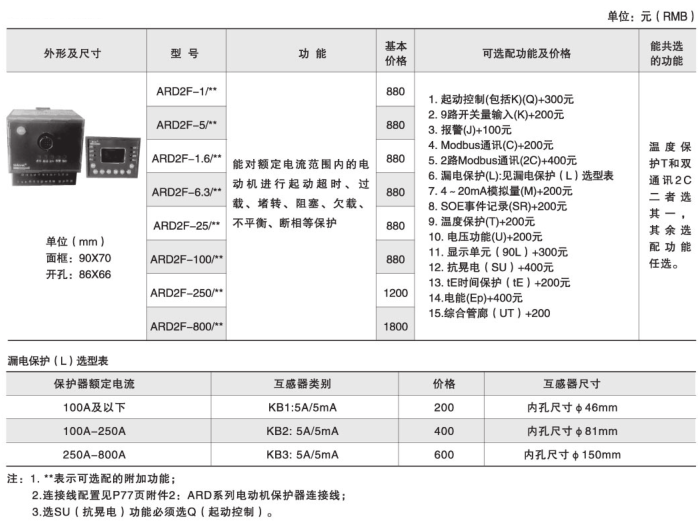 該系列低壓電動機保護器,具有過載、斷相、不平衡、欠載、接地/漏電、堵轉等保護功能。可與接觸器、電動機起動器等電器元件構成電動機控制保護單元,具有遠程自動控制、現場直接控制、面板指示、信號報警、現場總線通信等功能。