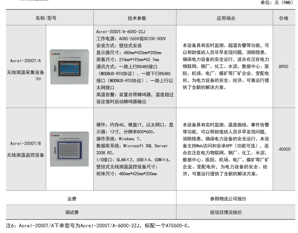 Acrel-2000T/A 無線測溫采集設備適用于高壓開關柜觸點及接點、刀閘開關、高壓電纜 中間頭、干式變壓器、低壓大電流等設備的溫度監測。該設備可以與無線測溫收發器搭配使用,實現多 240 個無線測溫傳感器數據,匹配的傳感器包括 ATE100、ATE200、ATE300B、 ATE300、ATE400。無線溫度傳感器與收發器交換通過無線信號傳送.無線測溫采集設備主機壁掛式帶蜂鳴器。