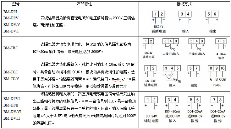 BM系列模擬信號隔離器可以對電流、電壓等電量參數(shù)或溫度、電阻等非電量參數(shù)進行高速測量,經(jīng)隔離轉(zhuǎn)換成標準的模擬信號輸出。既可直接與指針表、數(shù)顯表相接,也可以與自控儀表(如PLC)、各種A/D轉(zhuǎn)換器以及計算機系統(tǒng)配接。