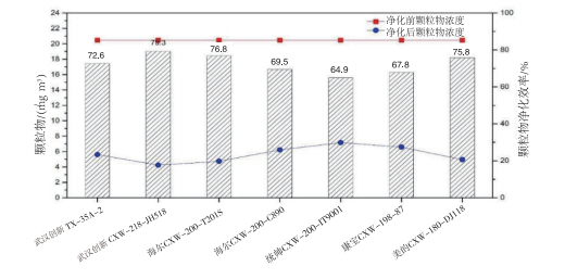 圖6不同工況下顆粒物凈化效率數(shù)據(jù)比較