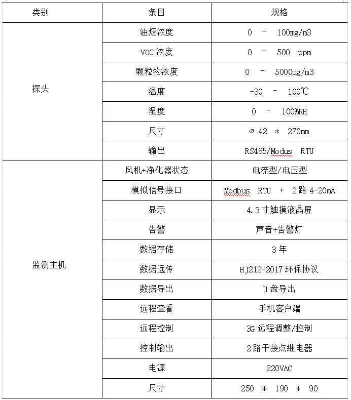 對油煙排污數(shù)據(jù)的監(jiān)測,包括油煙排放濃度,顆粒物,NmHc等數(shù)值采集監(jiān)測;同時(shí)對監(jiān)控風(fēng)機(jī)和凈化器的啟停狀態(tài)、運(yùn)行數(shù)據(jù)進(jìn)行監(jiān)測。