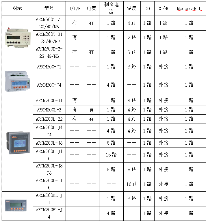 注:以下配置為針對1個回路選型,其中剩余電流互感器應根據現場回路電流大