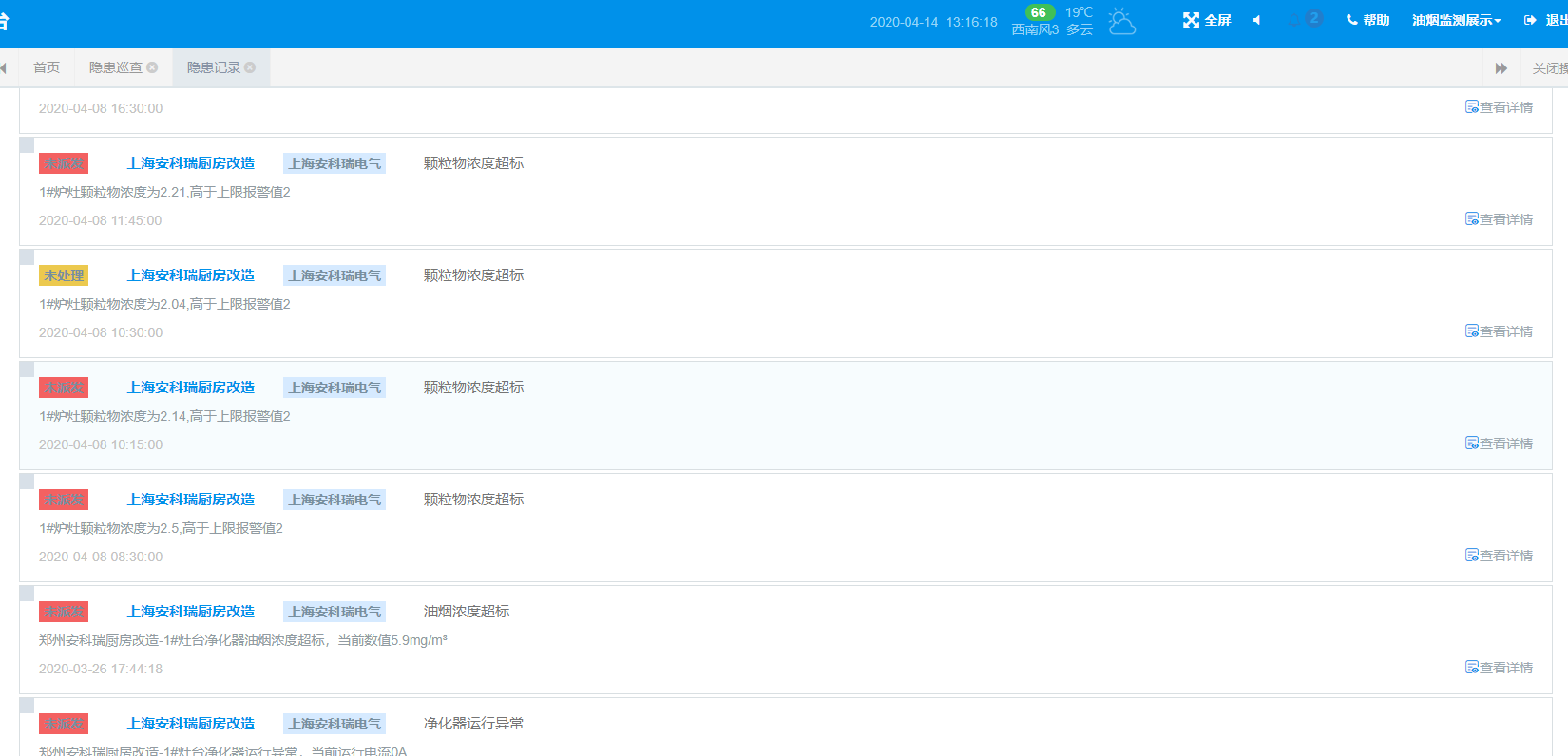 系統(tǒng)對采集的告警數(shù)據(jù)分析,產(chǎn)生對應(yīng)的隱患記錄,派發(fā)、處理隱患,及時處理告警,形成閉環(huán)。