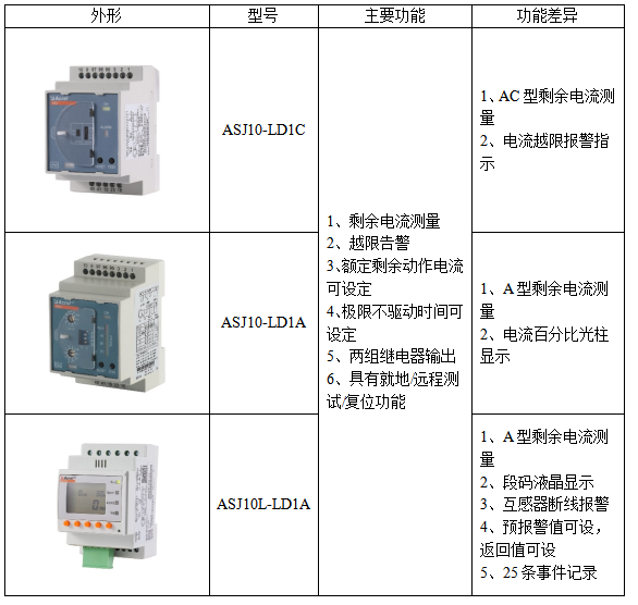 ASJ系列產(chǎn)品主要有兩種安裝方式,ASJ10系列為導軌安裝,外形和功能如下表所示: