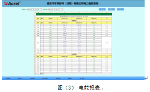 報表具有自由設置查詢時間實現日、月、年的電能統計,數據導出和報表打印等功能。