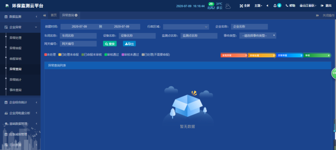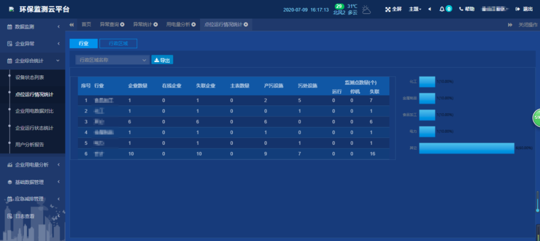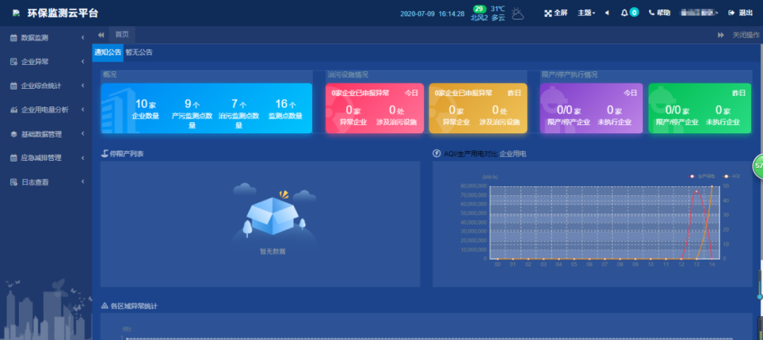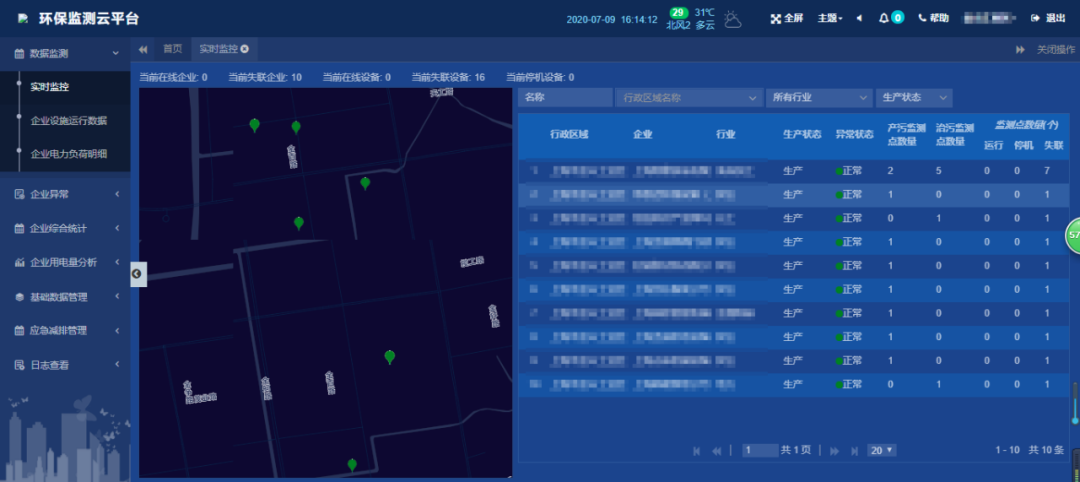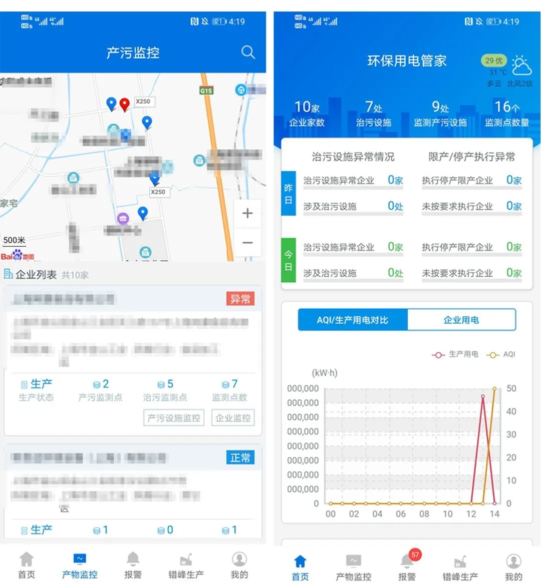 通過關聯分析、超限分析、啟停時間分析,及時發現環保治理設備未開啟、異常關閉及減速、空轉、降頻等異常情況,同時通過數據分析還可以實時監控限產和停產整治企業運行狀態。