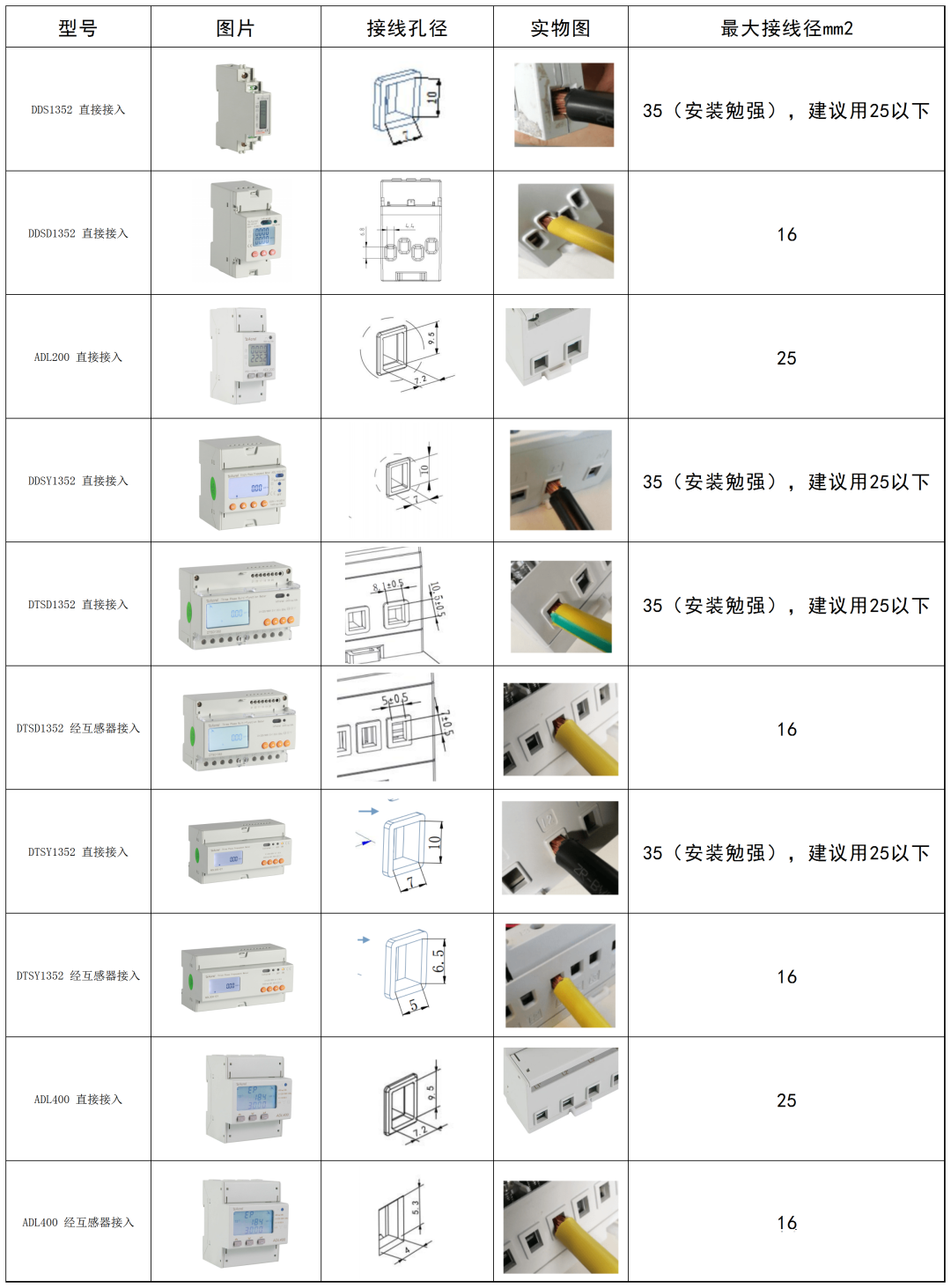 直接接入線徑