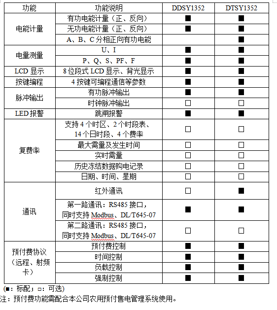 DTSY1352三相預付費灌溉公用電能表用于計量額定頻率50Hz的單、三相交流有功電能,具有預付費控制、負載控制、時間控制、一卡多表、一表多卡及RS485通信等功能,性能指標符合GB/T17215.321-2008標準。是改革傳統(tǒng)用電體制,提高用電管理水平的理想計表。產(chǎn)品符合企業(yè)標準Q31/0114000129C035-2017《導軌式安裝電能表企業(yè)標準》的要求。