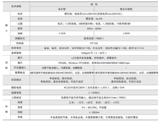 該產品具備RS485通訊接口,其所采樣得到的電壓、電流、頻率、有功功率、無功功率、諧波含量、功率因數、溫度可通過通訊接口傳送到其它外部設備。產品具備過電壓、欠電壓、欠流鎖定、斷相、過畸變、溫度保護功能。